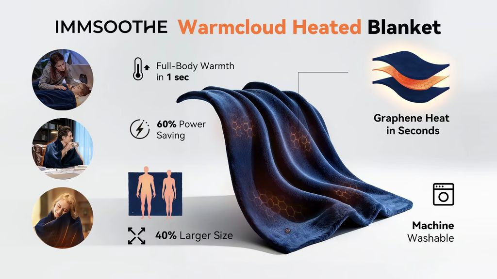 Immsoothe Warmcloud Heated Blanket: Graphene Heat in Seconds